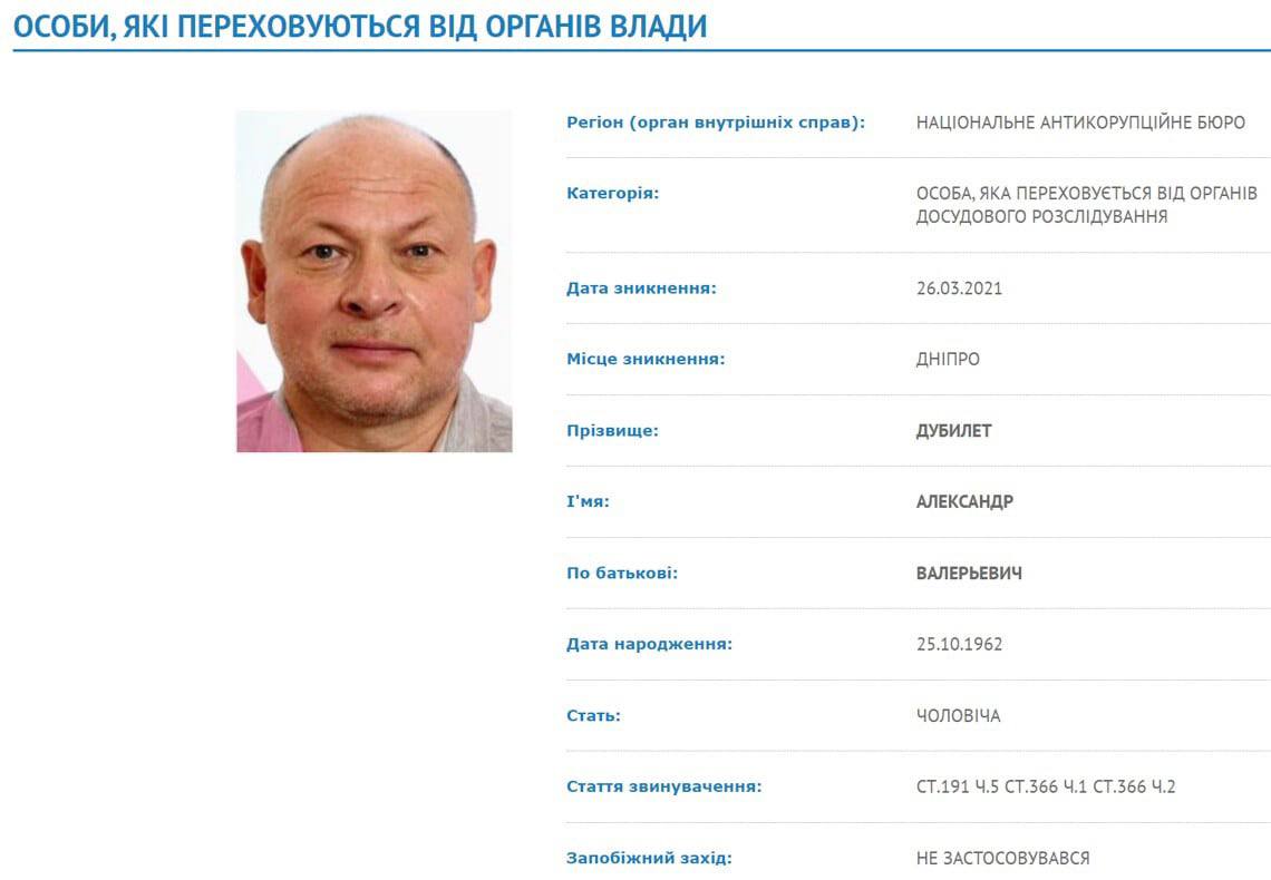 Решение об аресте приняли судьи ВАКС. И к этому времени Дубилет уже как три с половиной года находится в Украине в розыске.