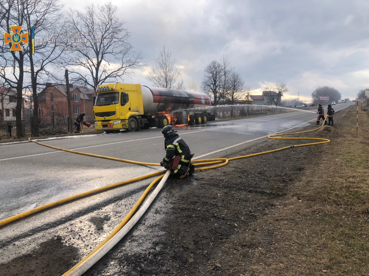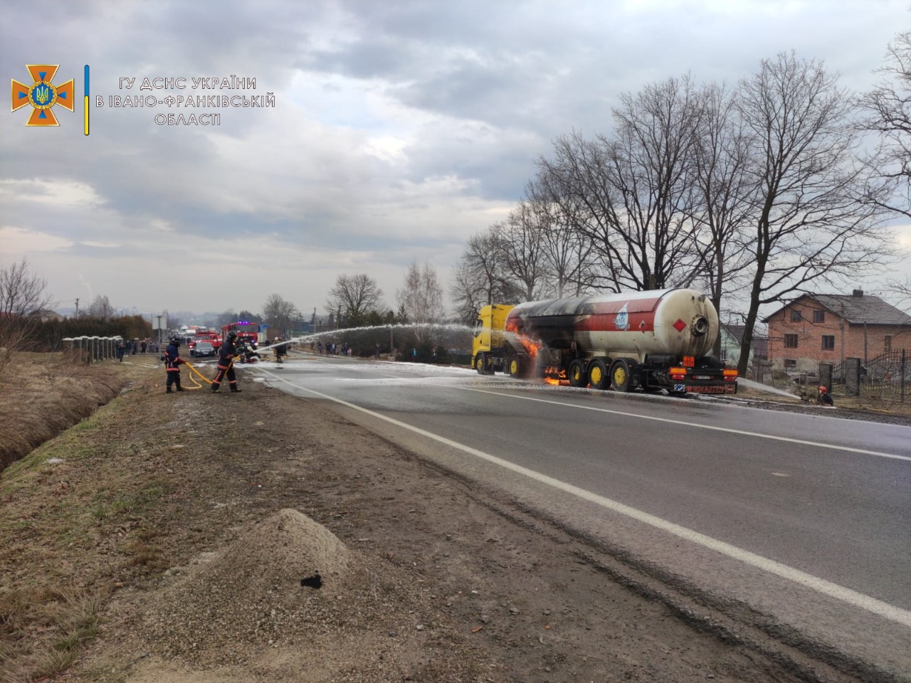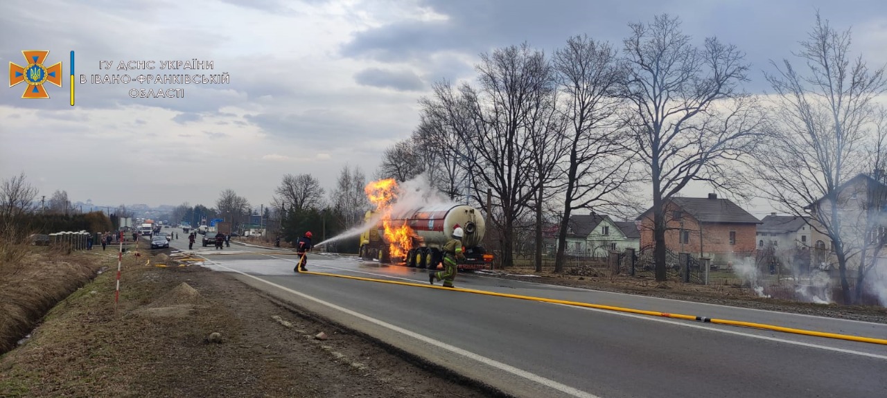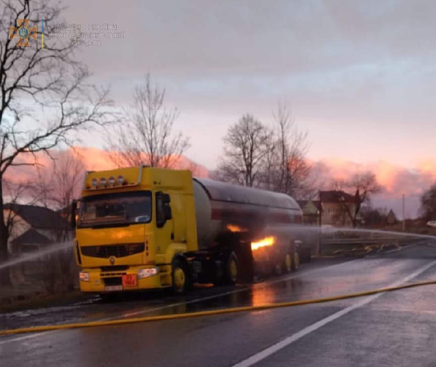 В Ивано-Франковской области на дороге посреди села Креховичи загорелась автоцистерна, перевозившая сжиженный газ.