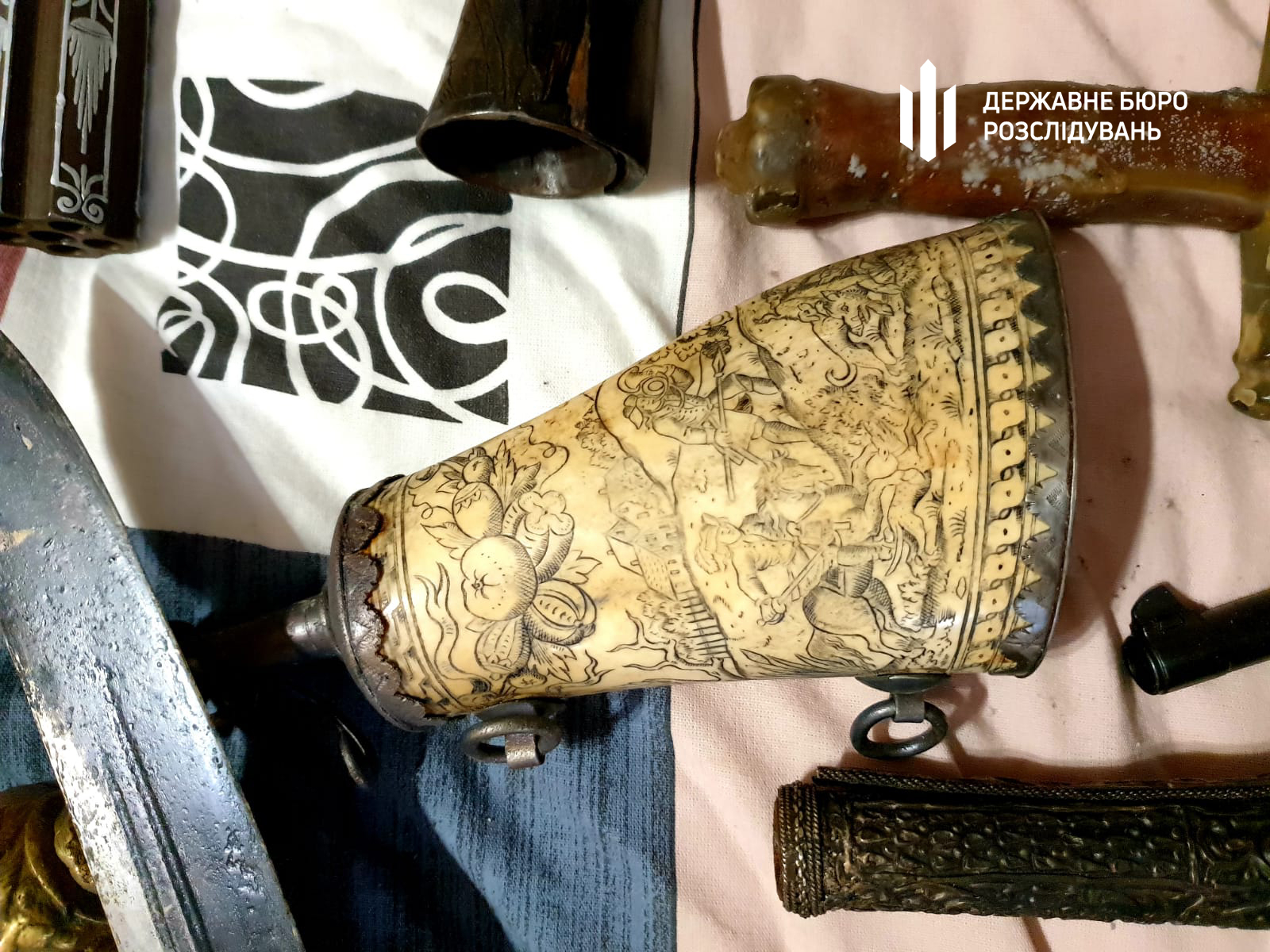 В частности, извлечен меч Гунов, декорированный золотом и альмандинами. По стилистике он напоминает известную гунскую диадему из Мелитопольского музея, которая была похищена русскими оккупантами. Также найдены доспехи 16–19 вв., среди которых шлемы польских гусар, типа Морион, иранские шлемы, монеты периодов от античности до позднего средневековья. Нашли правоохранители и византийскую золотую декорированную эмалью иконку с изображением архангела Михаила 11–12 вв., античные и скифские древности, иконы, холодное оружие 14–19 вв., Первой и Второй мировых войн, мечи эпохи Великого пересечения.