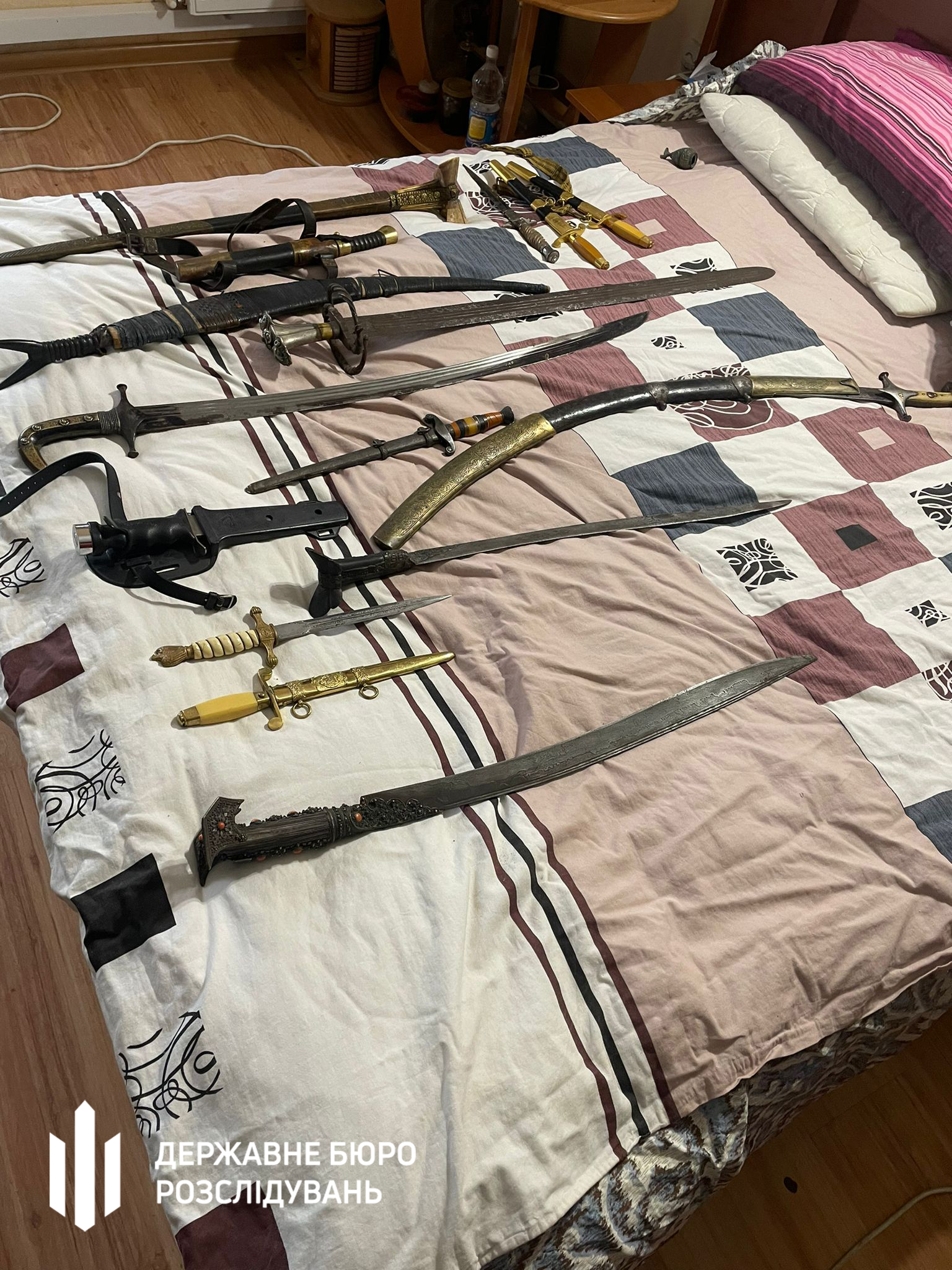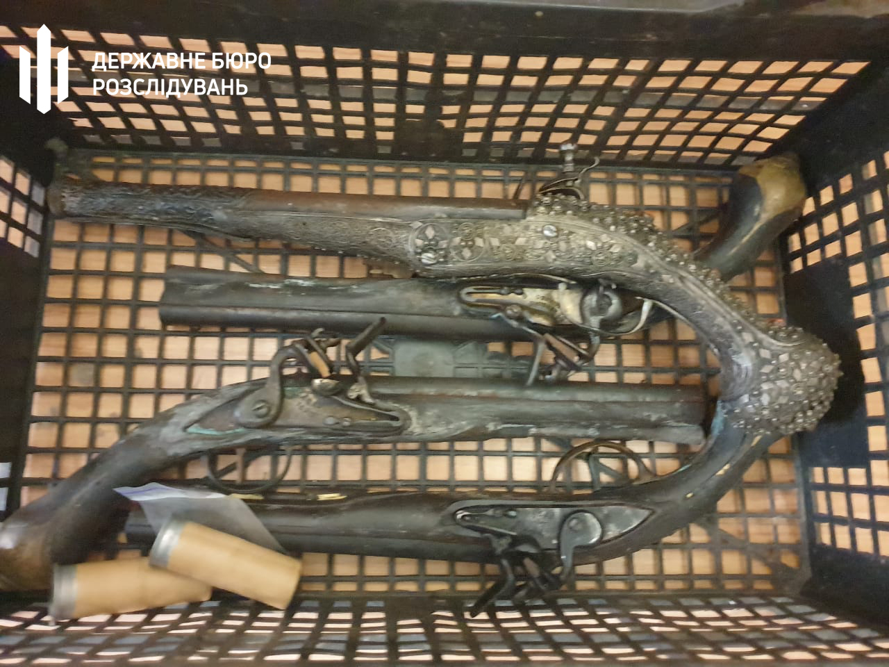Тогда работники ГБР провели шесть одновременных обысков. В одном из офисных помещений Киева, принадлежащих эксдепутату, было обнаружено более шести тысяч единиц исторических и культурных ценностей. В частности, в ходе обысков обнаружены скифские мечи Акинак, копья, топоры, стрелы, монеты, кольчуга 12 века, шлемы эпохи Эллинизма и посуда Трипольской культуры.