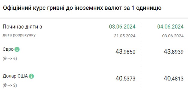 Национальный банк Украины на вторник, 4 июня, по сравнению с предыдущим банковским днем укрепил курс гривны до 40,48 гривен за доллар.