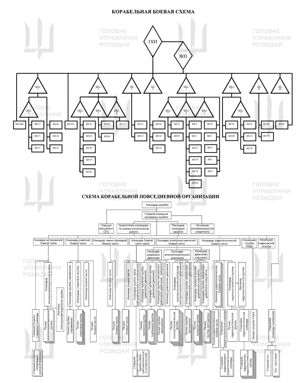 - боевая схема субмарины, схемы обеспечения живучести и организационной структуры;