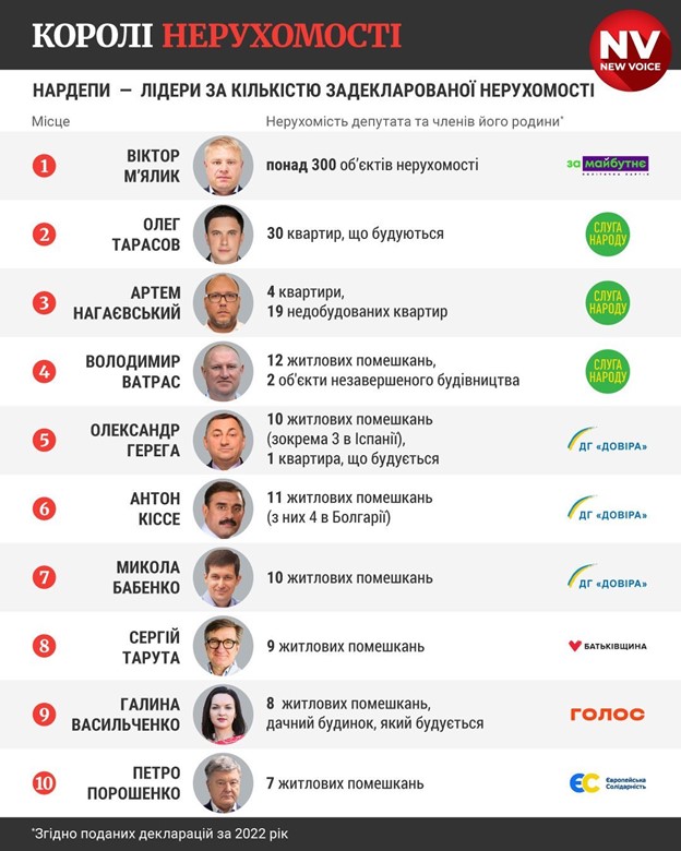 NV проанализировал декларации всех депутатов Верховной Рады за 2022 год и определил тех избранников, которые имеют наибольшее количество квартир и жилых домов.