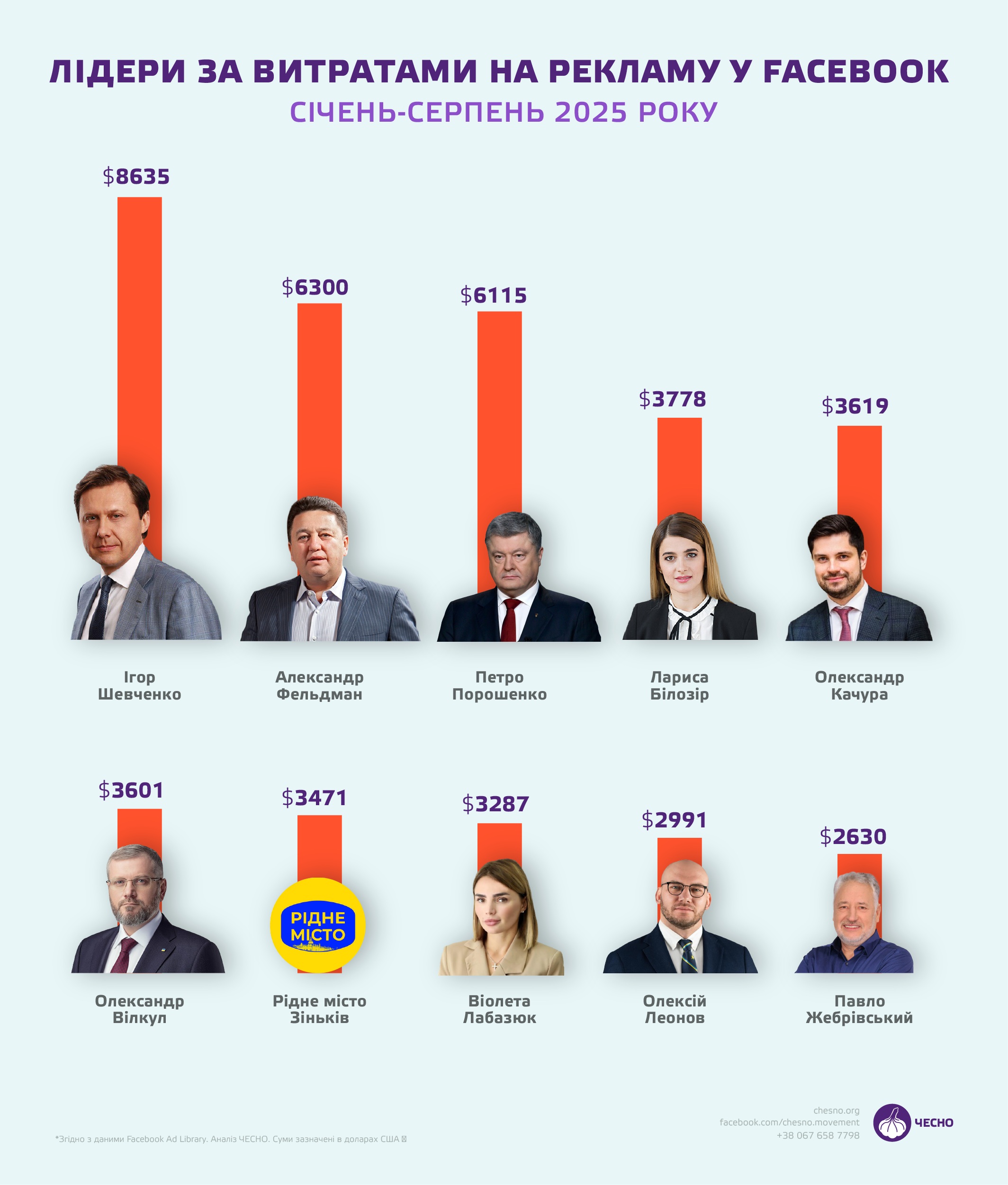 Бывший министр экологии Игорь Шевченко стал лидером среди украинских политиков по объему расходов на рекламу в Facebook. Только в 2025 году он потратил на продвижение своих публикаций более 8,5 тысяч долларов, активно продвигая контроверсионные политические лозунги, персональные размышления и даже опрос о возможном президентстве Валерия Залужного.