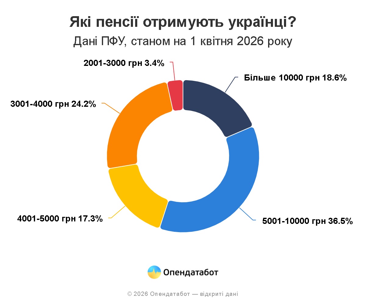 Растет и количество граждан с более высокими выплатами. В настоящее время 1,86 миллиона пенсионеров (19%) получают более 10 тысяч гривен. Средний размер пенсии в этой группе составляет около 16,5 тысячи гривен.