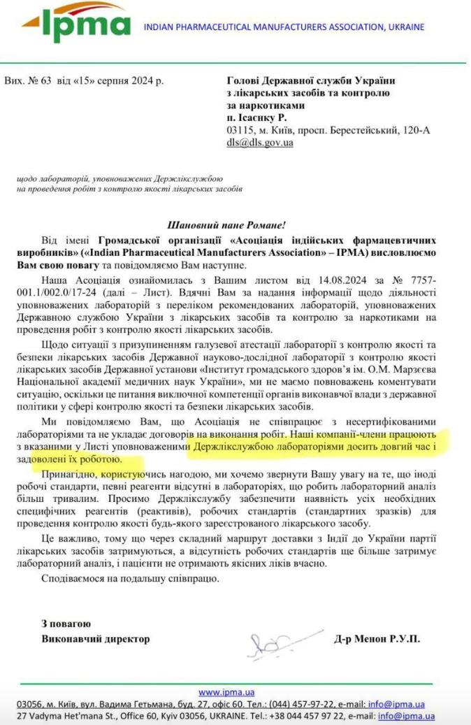 Госликслужба к ним направила соответствующее письмо и эту информацию они не подтвердили. Более того, индийские производители довольны работой Госликслужбы.