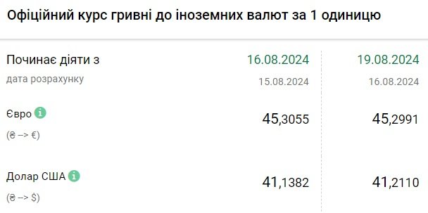 Официальный курс на 19 августа 2024 установлен на таком уровне, по данным Нацбанка: