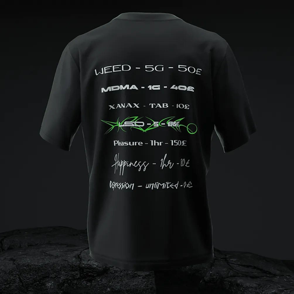 Также расследователи нашли сайт компании Горковенко-младшего, на котором рекламируется одежда с принтами изображений различных наркотических и психоактивных веществ – MDMA (амфетамин), марихуана, ЛСД, Ксанакс. Одна из футболок напрямую относится к Украине: на ней изображен стилизованный герб Киева, где вместо листьев каштана – лист марихуаны.