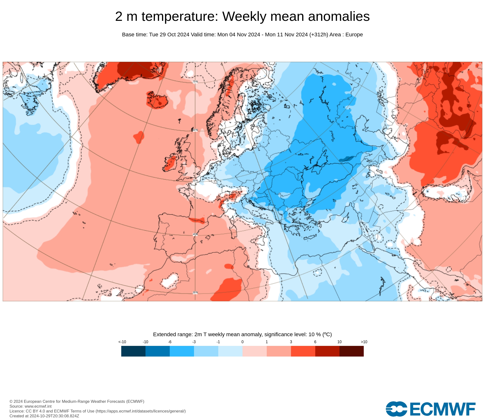 В этом году с первых же дней ноября ожидается интенсивное развитие циклонической деятельности над Скандинавским полуостровом и странами Балтии. По состоянию на данный момент над Гренландией и Северной Полярной областью уже накопилось достаточное количество морозного воздуха. Благодаря ожидаемой серии циклонов этот холодный воздух постепенно начнет проникать в южные широты в тыловой части холодных фронтов. Прогретые воды Балтийского и Норвежского морей обеспечат циклоны значительным количеством энергии и влаги, а морозный арктический воздух создаст большой межширотный температурный контраст. Эти факторы будут благоприятно влиять на степень развития циклонов, которые благодаря активному западному переносу будут быстро смещаться с запада в восточном направлении. Поэтому в первой декаде ноября по всей северной и восточной Европе ожидается капризная погода, которая будет сопровождаться выпадением осадков в виде дождя, снега и снежной крупы, сильными порывами ветра и понижением температурного фона (см. прогностическую карту аномалий температуры с 4 по 11 ноября).