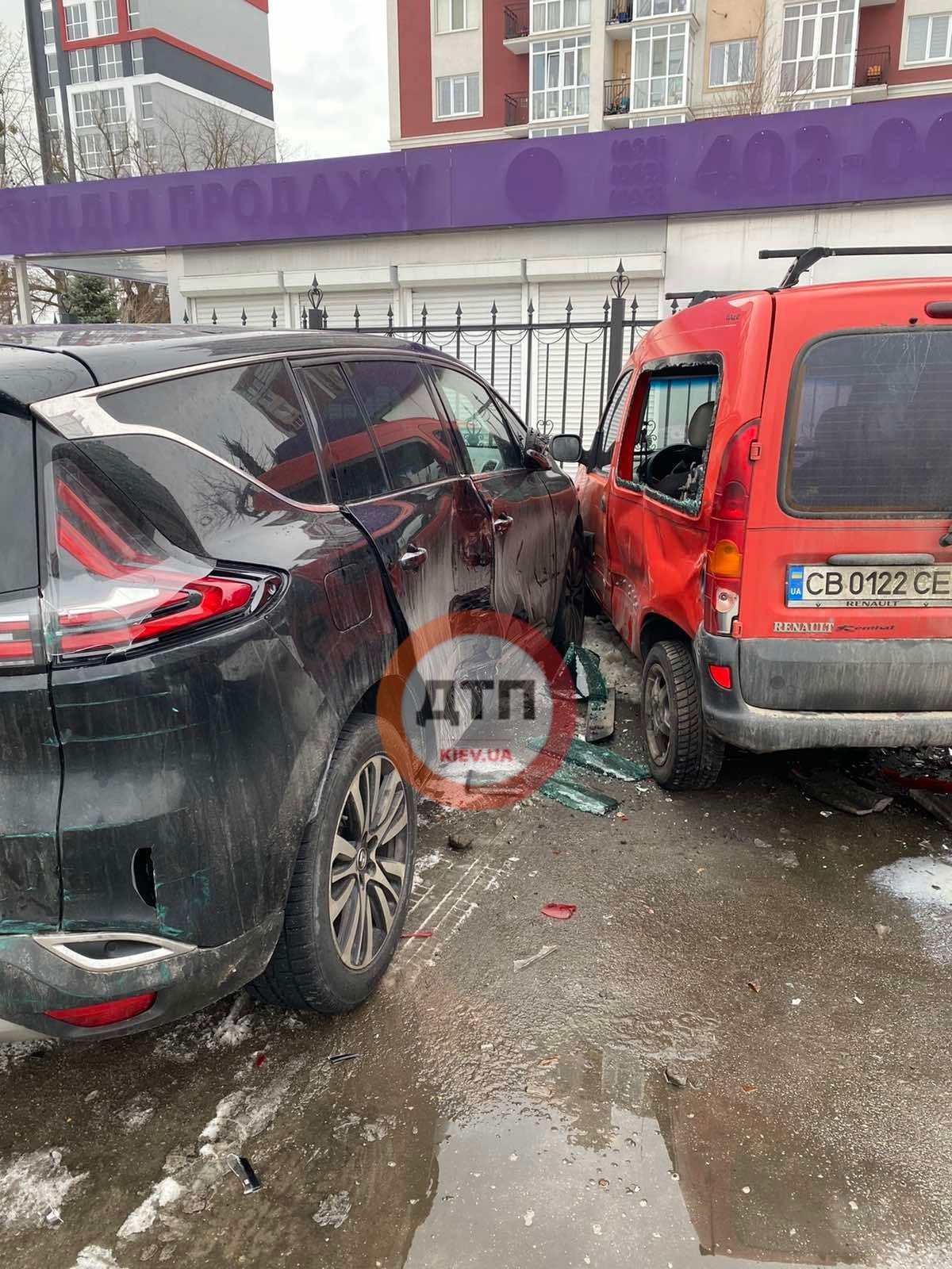 Как сообщили очевидцы в группе dtp.kiev.ua, водитель микроавтобуса Volkswagen на улице Свято-Покровская 73 Е въехал в припаркованные автомобили.