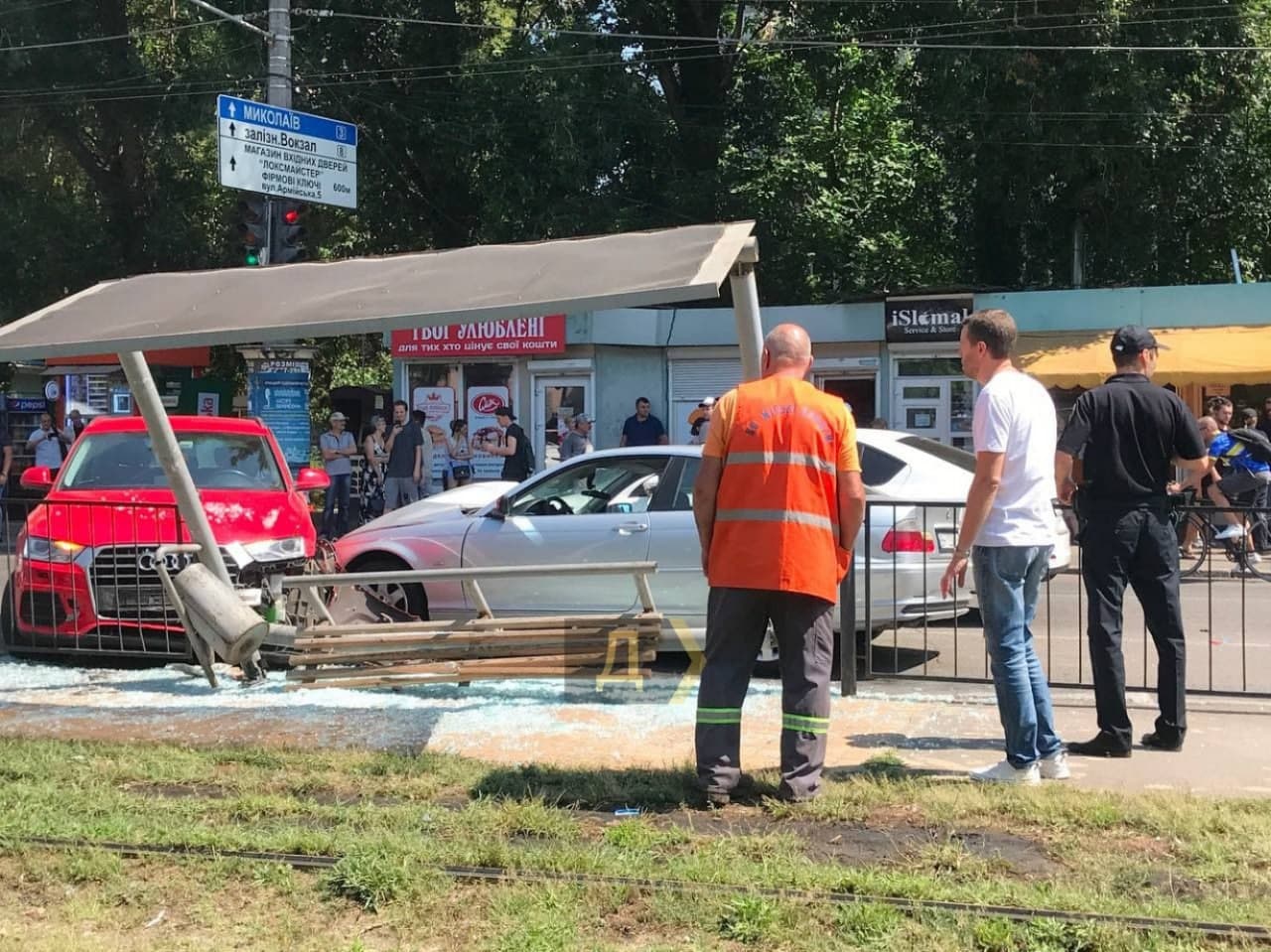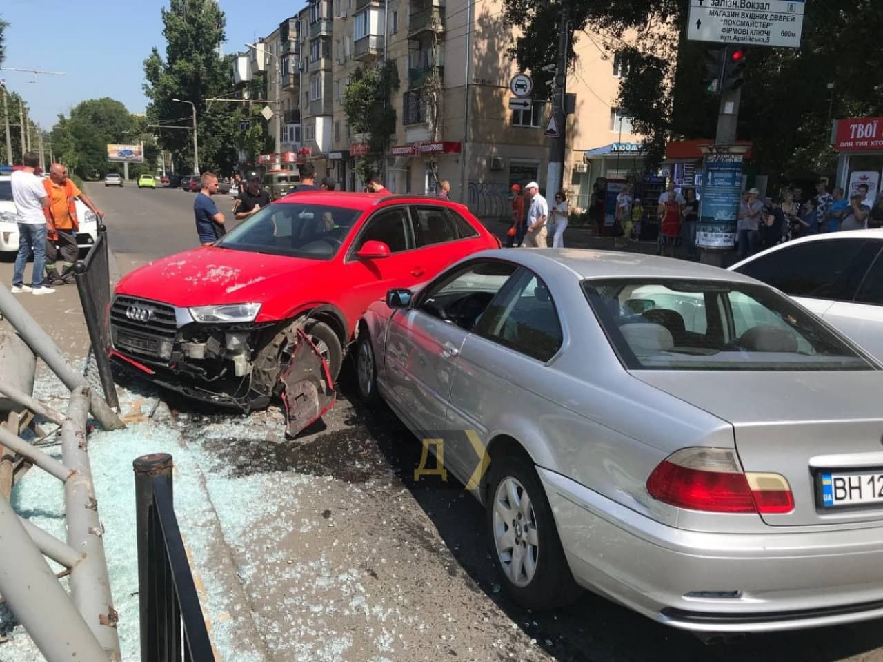 Как сообщает местное издание "Думская", водитель серебристого BMW протаранил Skoda, Audi и BMW. В результате удара одну из машин развернуло и она влетела в остановку общественного транспорта, где находились люди.