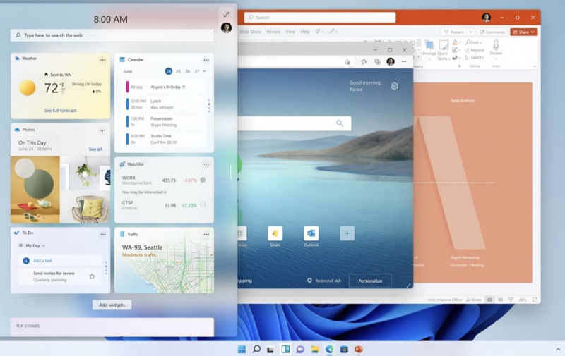 В общем интерфейс стал визуально легче, имеет больше тем оформления, других возможностей по кастомизации, а также ожидают возвращения виджетов. Окна теперь можно будет сгруппировать по одному из заранее предусмотренных сценариев. Внешний вид самих окон тоже изменился, они стали более круглыми, как и все в ОС.