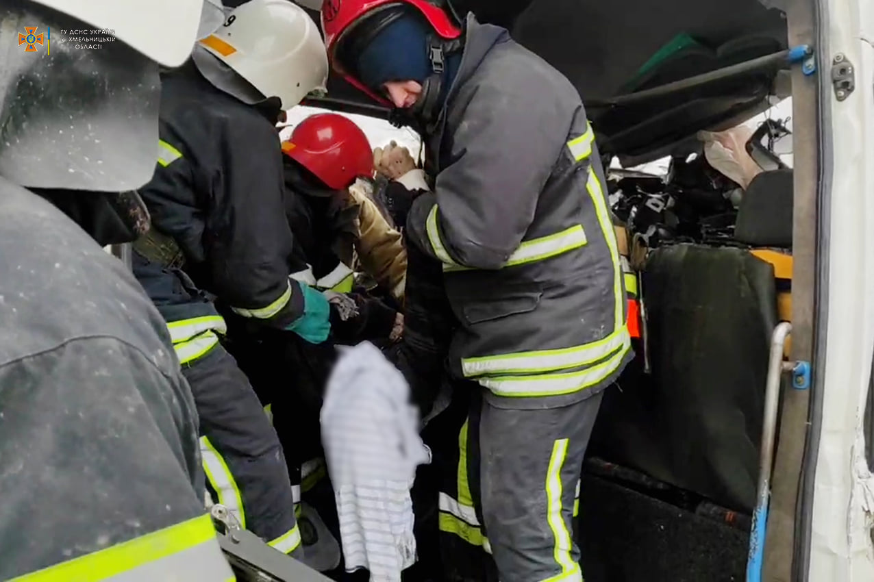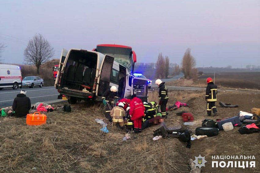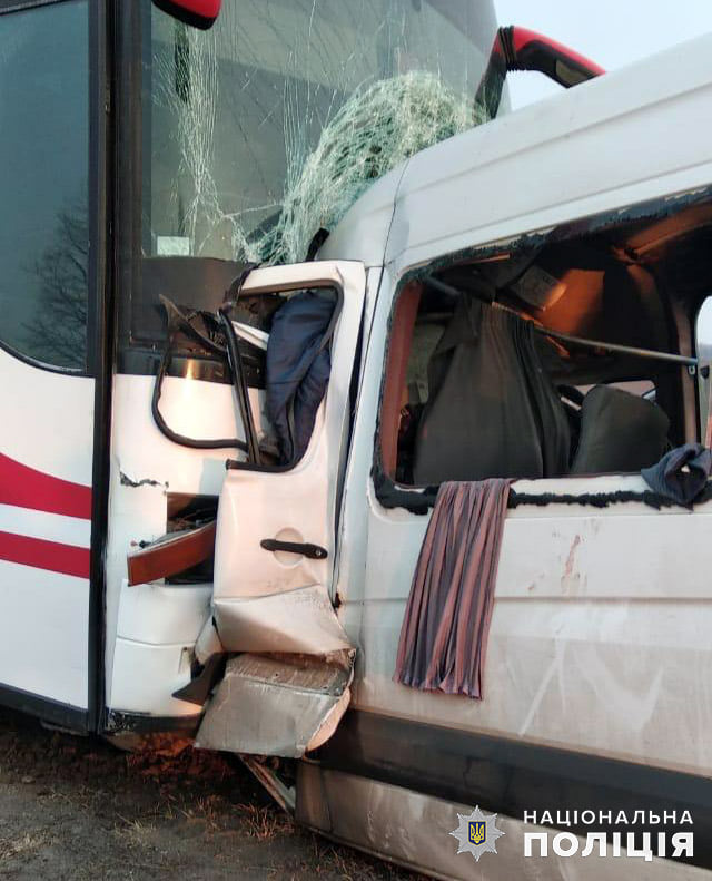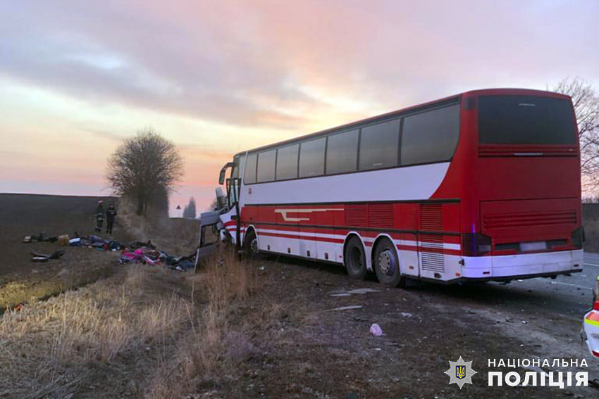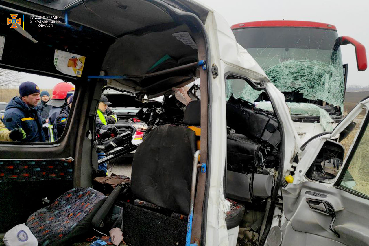 В результате ДТП водитель и 6 пассажиров микроавтобуса погибли на месте происшествия. Еще 9 пассажиров транспортного средства госпитализированы в больницу в Волочиске.