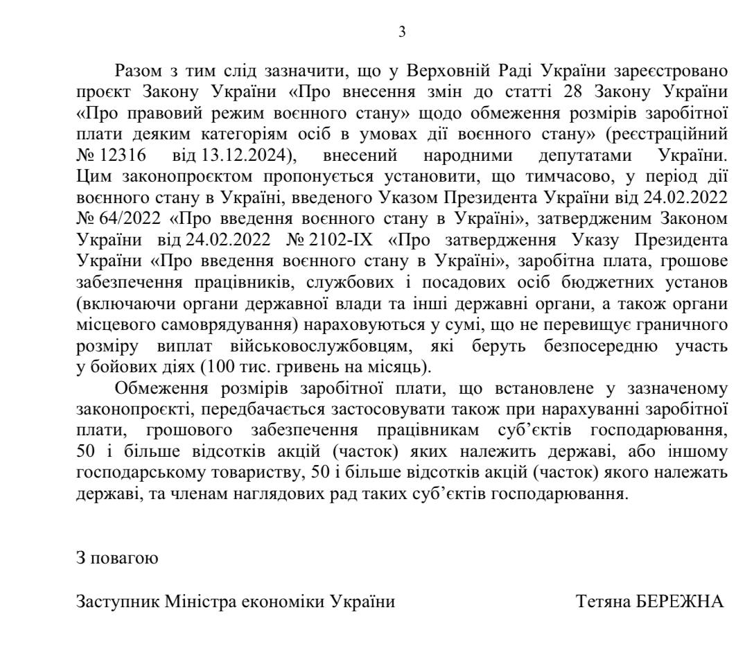 Ранее Гончаренко предлагал внести изменения в правительственное постановление, чтобы на время военного положения зарплата руководителей государственных предприятий не превышала десяти минимальных зарплат, что составляет около 100 тысяч гривен. Однако Минэкономики заявило, что подобных изменений не предусматривает.