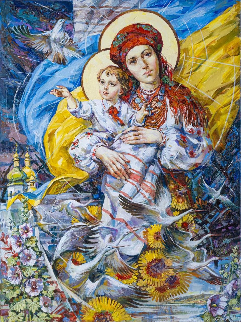 Образ "Украинской мадонны" является центральной темой выставки, олицетворяющей не только Божью Матерь, но и всех украинских женщин-матерей, события, которые сегодня происходят в Украине, войну, страдания и веру в Победу.