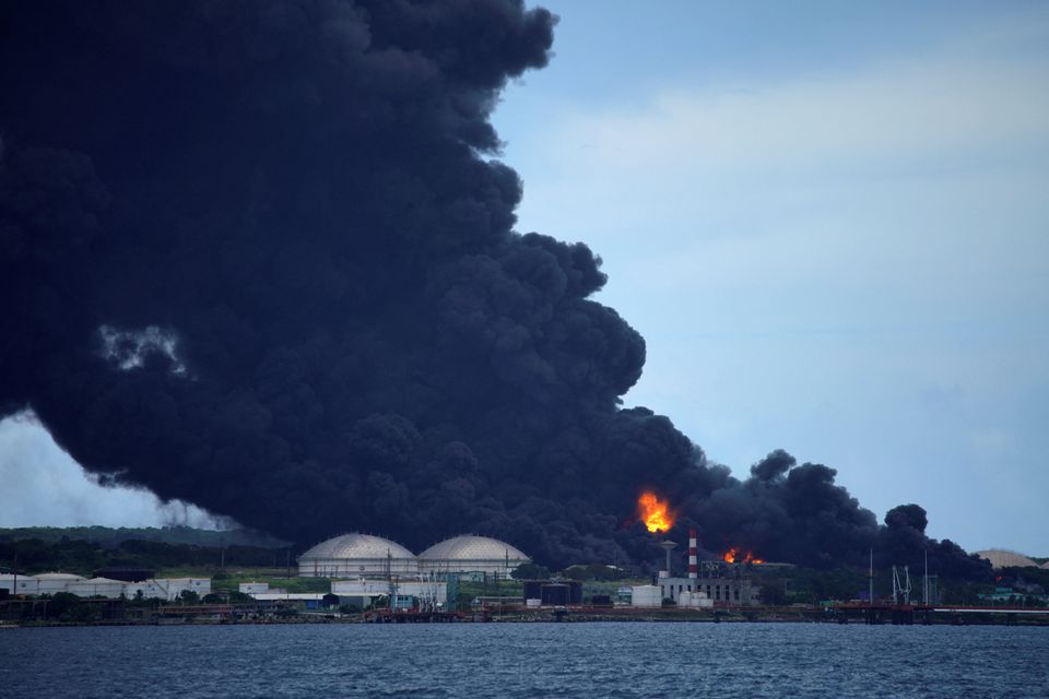 В порту города Матансас на Кубе молния попала один из резервуаров нефтехранилища, в результате чего возник масштабный пожар.