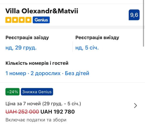 - Шале Villa Olexandr&Matvii стоит 252 000 грн. без скидки или 192 780 грн. со скидкой.