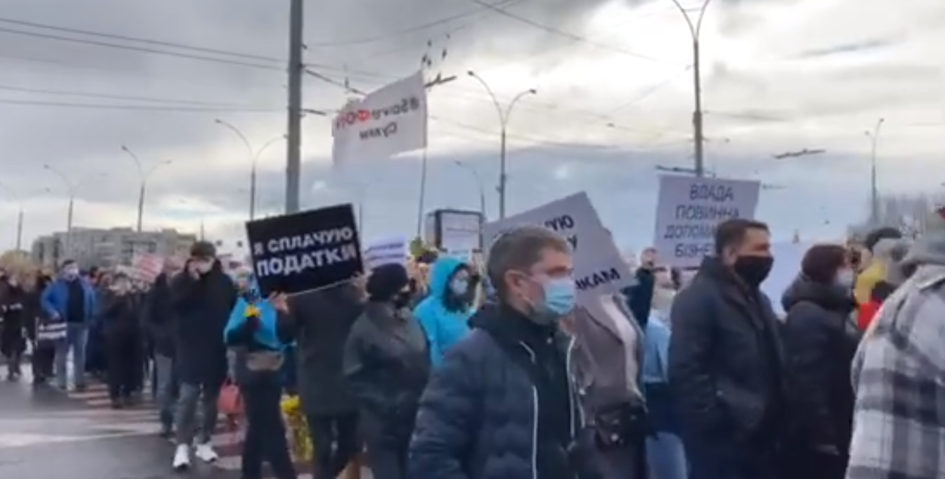 В Киеве предприниматели перекрыли движение на центральной улице Крещатик через масштабную акцию против введения очередного локдауну. Между правоохранителями и митингующими произошли столкновения, есть первые пострадавшие.