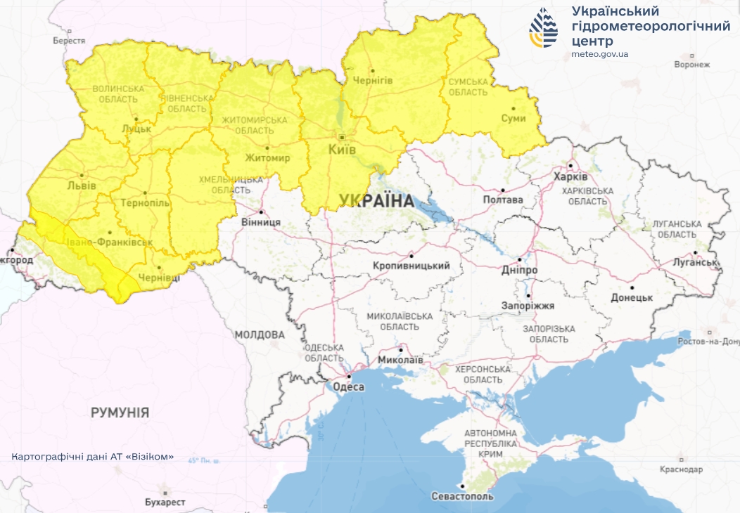 Объявлен I уровень опасности – желтый. Источник: Укргидрометцентр