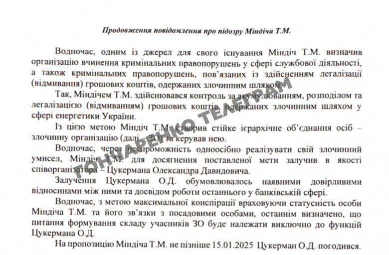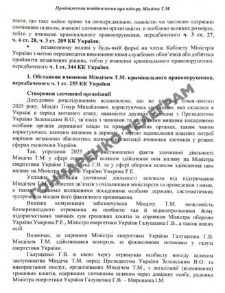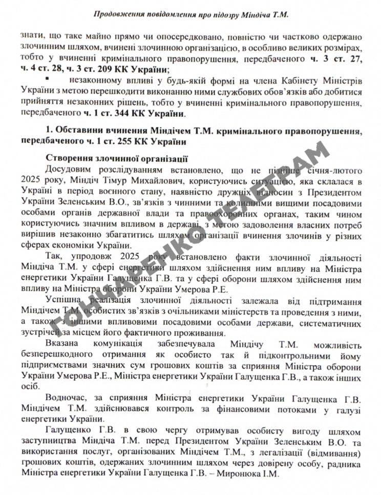 Миндича подозревают в формировании и координации структуры, систематически осуществлявшей незаконное влияние на государственные процессы. - Незаконное влияние на министра энергетики и министра обороны.