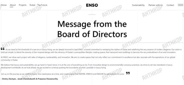Примечательно, что на дубайском сайте Enso investment Давтян указал свое имя по российской транслитерации. Именно поэтому можно было бы подумать, что это какой-то другой Давтян, а не помогавший Кличко «пилить деньги» на строительстве печально известной развязки на Шулявском путепроводе в Киеве.