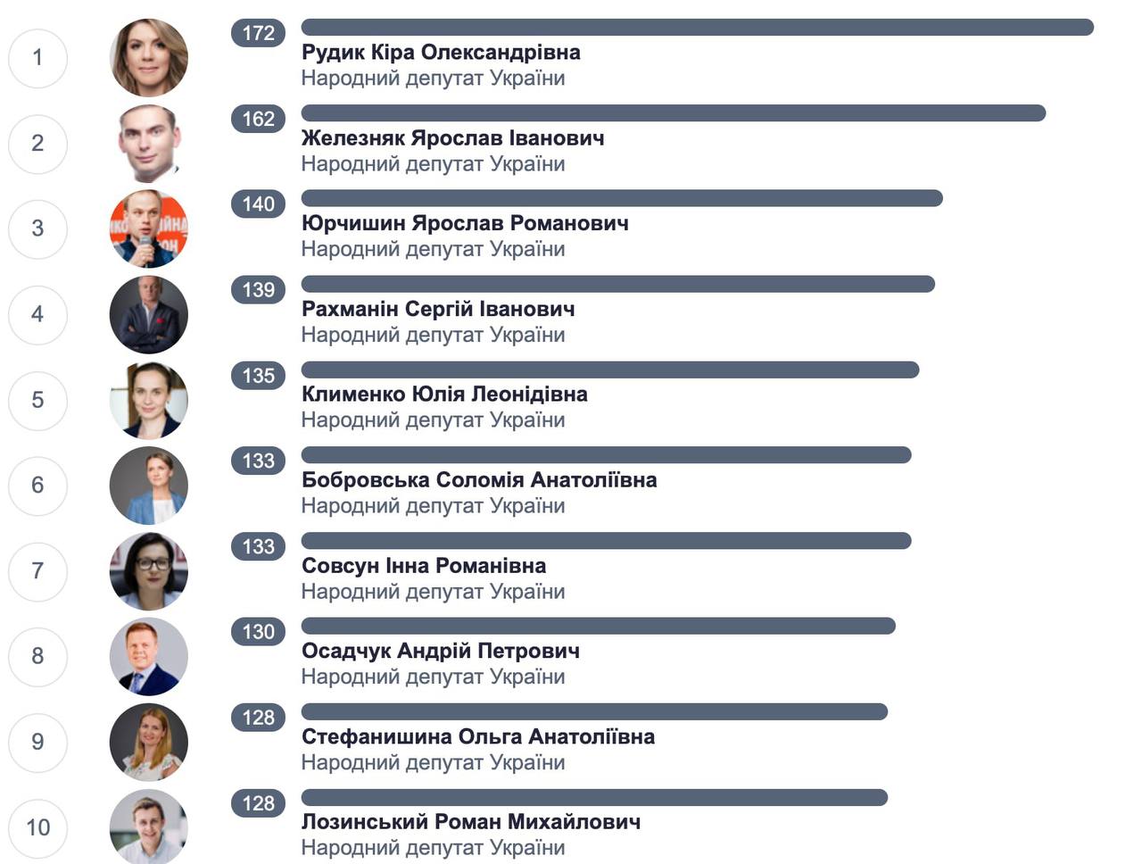 Да, Рудик и Железняк лидируют по количеству данных публичных обещаний. Политики предоставили 172 и 162 публичных обещания соответственно.
