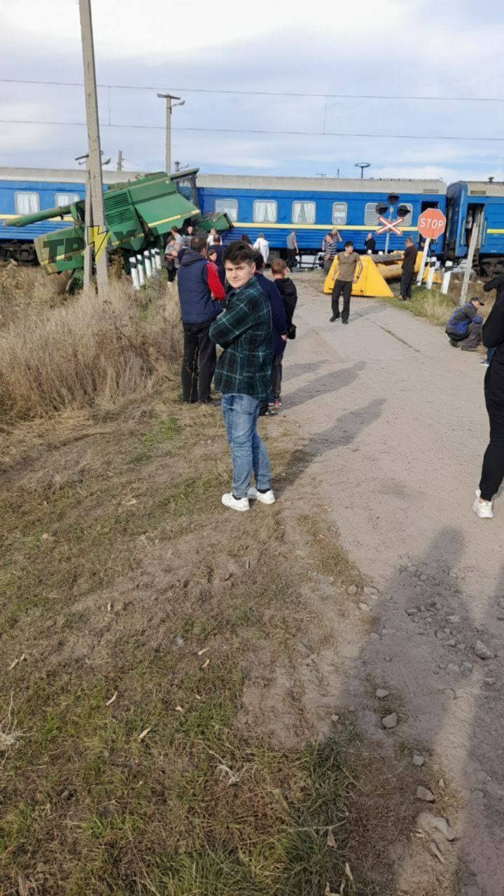 Пассажирский поезд сообщением Бахмут-Львов на железнодорожном переезде протаранил комбайн.
