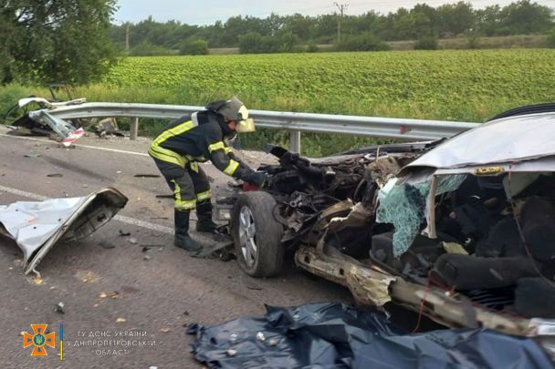 По вызову привлечены спасатели города Павлоград и отделение пожарных поселка городского типа Петропавловка. По прибытию по указанному адресу, специалисты ГСЧС установили, что автомобиль "Chevrolet Epica" столкнулся с дорожным отбойником. В салоне легковушки находились трое мужчин. От полученных травм все они погибли на месте происшествия, - говорилось в сообщении.