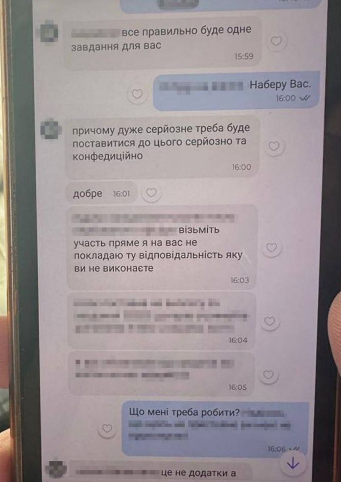 Следствие установило , что женщина в конце 2024 года была дистанционно завербована представителями спецслужб РФ при поиске подработки в интернете. Сначала она выполняла задания по наблюдению за транспортными средствами и передавала фотографии и координаты. Впоследствии получила указания изготовить самодельное взрывное устройство, а также переехала в жилой комплекс в Киеве, где живет Стерненко, чтобы следить за ним.