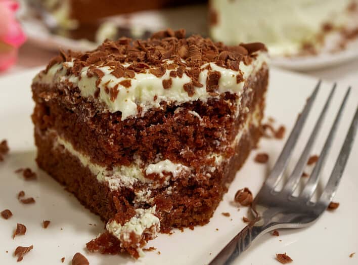 - Затем повторите слои в той же последовательности, верх торта смажьте кремом и посыпьте измельченным печеньем и шоколадом.