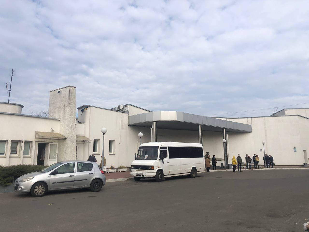 По состоянию на 20 октября очереди с катафалков не было. Впрочем, люди столпились у административного корпуса и стоят в очереди для оформления необходимых документов. Через COVID-ограничения внутри здания могут находиться только два человека одновременно. Другие - столпились на улице.