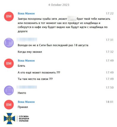 С начала октября этого года оба фигуранта начали собирать информацию о запланированном перезахоронении погибшего украинского защитника в селе Гроза. При этом они понимали, что в результате вражеской атаки обязательно погибнут мирные жители - их знакомые из села Гроза, в том числе и те, кто предоставлял им информацию.