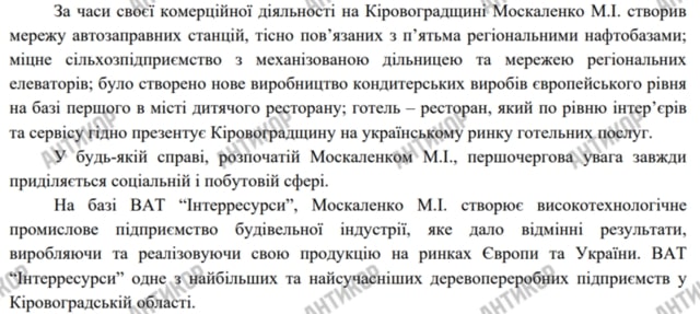 Согласно декларации Владимира Бондаренко, он вместе с коллегой арендует дом у Москаленко Кирилла Николаевича. Человек с такой же фамилией – сын бывшего председателя Кировоградского горисполкома. Москаленки владеют рядом компаний, которые с 2016 года выиграли несколько «сомнительных» государственных тендеров в разных областях.