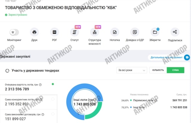 В 2023 году их фирма ООО «КБК», впрочем, была переписана на жителя Полтавской области, стала победителем в тендере на реконструкцию столовой с расширением помещений ГП «Олимпийский учебно-спортивный центр «Конча-Заспа». Стоимость работ оценили в 88,3 млн. гривен, а сам аукцион прошел только с одним участником.