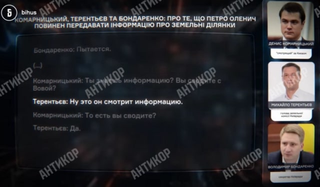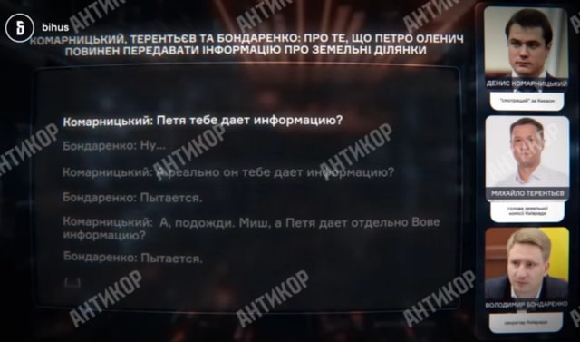В еще одном разговоре все те же лица обсуждают то, что Владимир Бондаренко должен получать информацию об имеющихся земельных участках от заместителя председателя КГГА Петра Оленича и сравнивать ее с имеющейся у него.