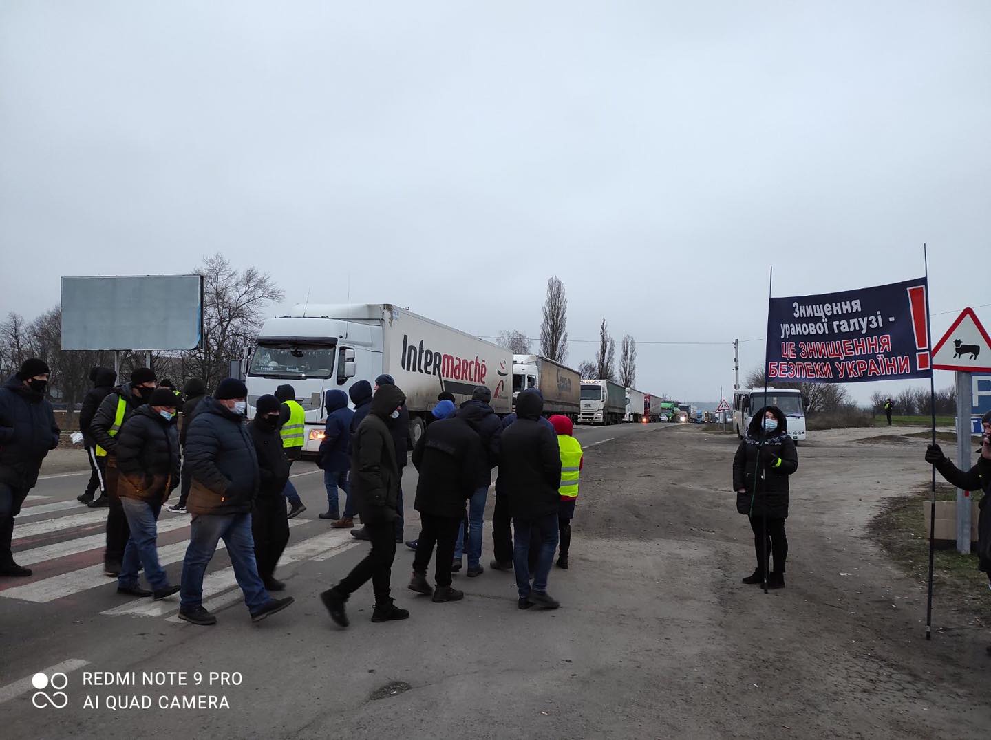 Работники уранодобывающих шахт "Смолинской", "Новоконстантиновской" и "Ингульской " (ГП "СхидГОК") продолжают блокировать движение трассами в Кировоградской области, - сообщил он и опубликовал фото с акций протеста.