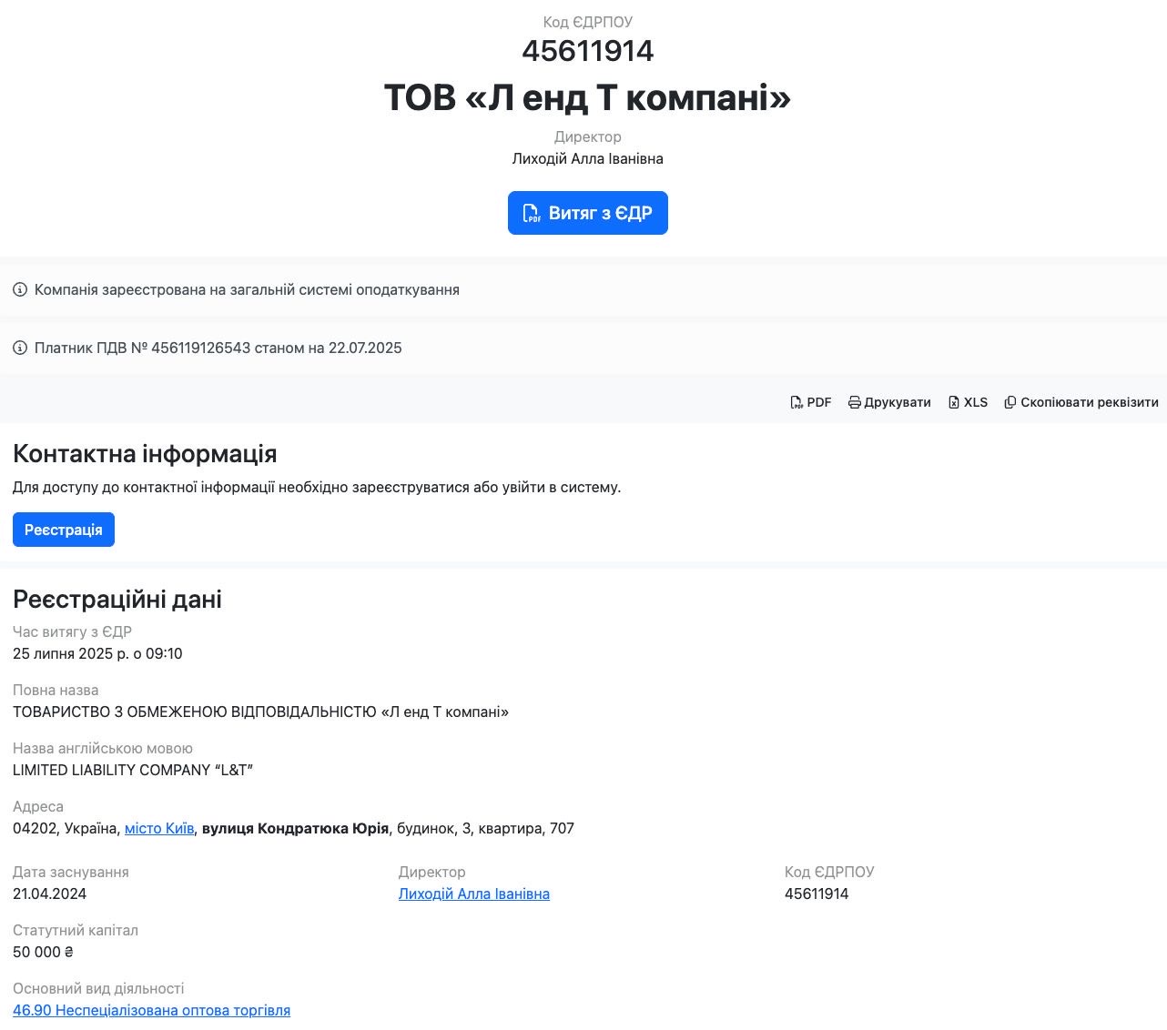 Компания зарегистрирована в обычной квартире киевской многоэтажки с уставным капиталом всего 50 тыс. грн. Владелец фирмы Алла Лиходий подтвердила, что работает бухгалтером в "Богдан-Авто Киев" – компании Михаила Гладковского (Свинарчука), сына беглеца Олега Гладковского.