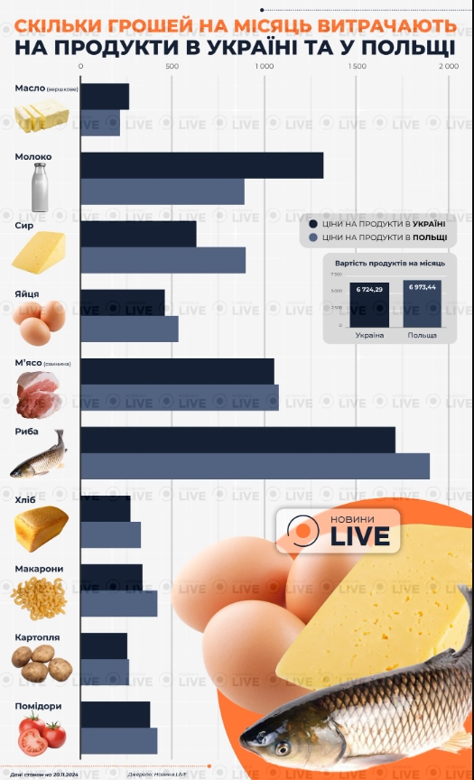 Сколько денег в месяц тратят на продукты Украины и Польши. Инфографика: Новини.LIVE