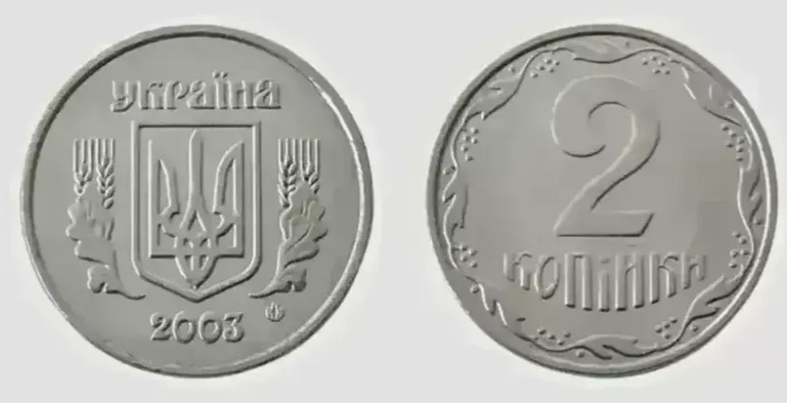 Монета номиналом 2 копейки 2003 также ценится среди коллекционеров, и за нее можно получить от 1800 до 5000 гривен. Нумизматы объясняют, что эти монеты редки, поскольку были изготовлены ограниченным тиражом для так и не выпущенного годового набора НБУ, и монеты, вероятно, попали в обращение.