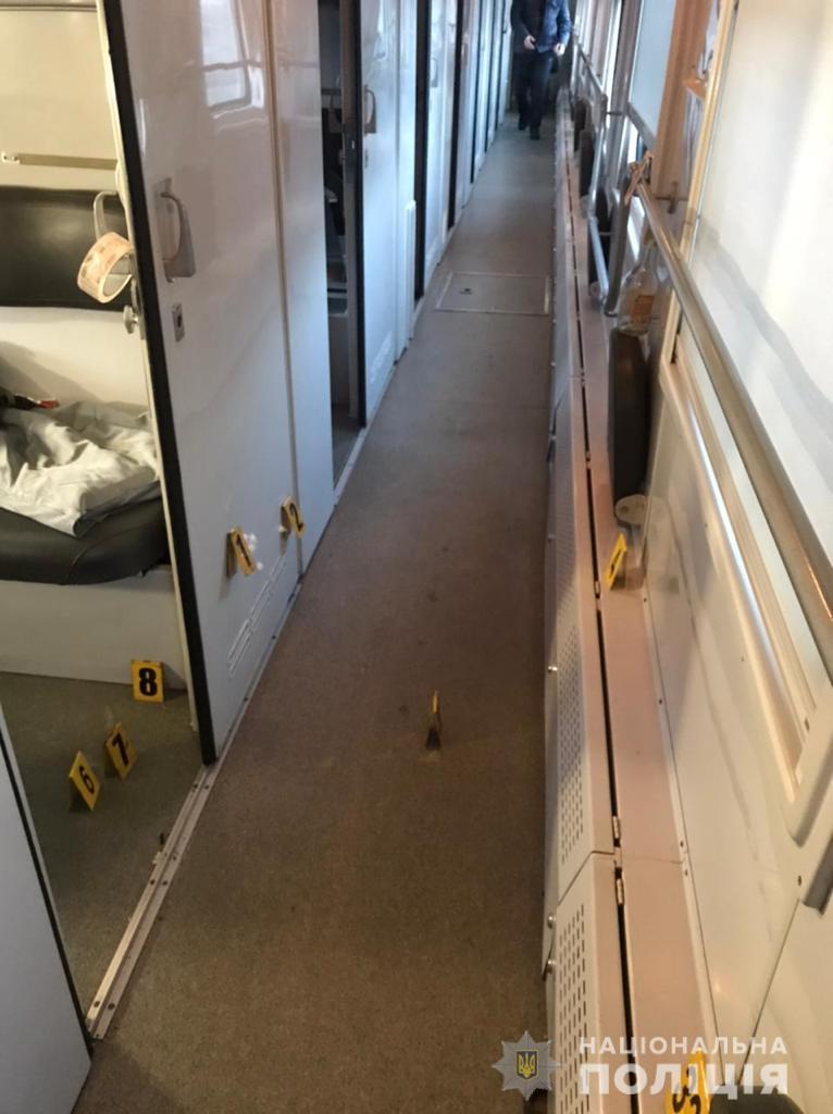 Сообщение о том, что неизвестные произвели выстрелы в купе поезда сообщением "Константиновка-Киев" поступило в Красноградский районный отдел полиции 6 апреля около 2:00.