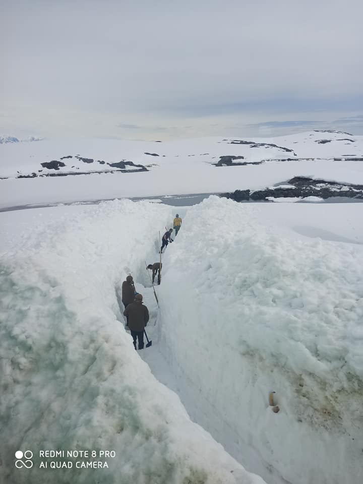 Зимовщики и участники сезонной экспедиции уже несколько недель освобождают территорию "Вернадского" от снежного плена. Почти откопали жилой корпус, часовню и проход ко второму причалу Джету. Также для проведения запланированных работ по модернизации станции расчистили металлоконструкцию возле дизельной для перемещения грузов, территорию за мусорной площадкой для ее расширения, место для прокладки новой топливной линии и фундамент крана для гидроизоляции.