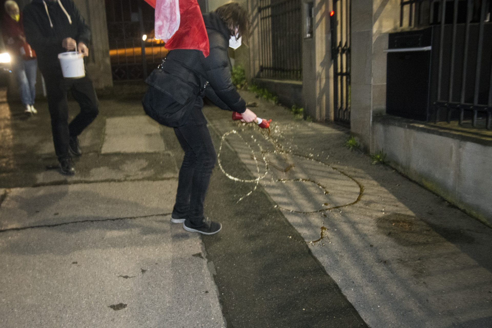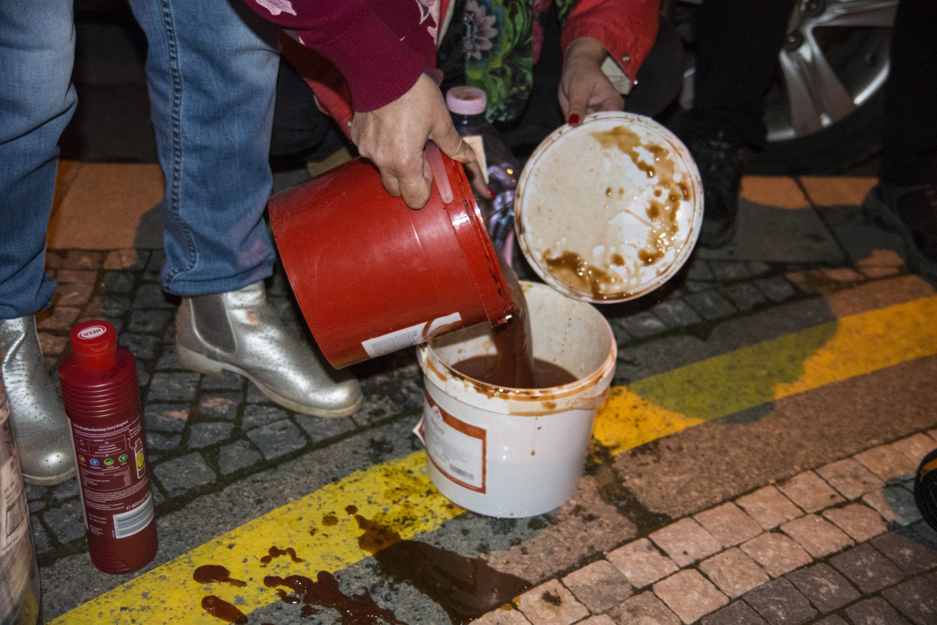 Мы использовали кетчуп, который своим темно-красным цветом символизирует их пролитую кровь, которая есть на руках российского режима и его представителей в Чехии, - сказал другой участник мероприятия.