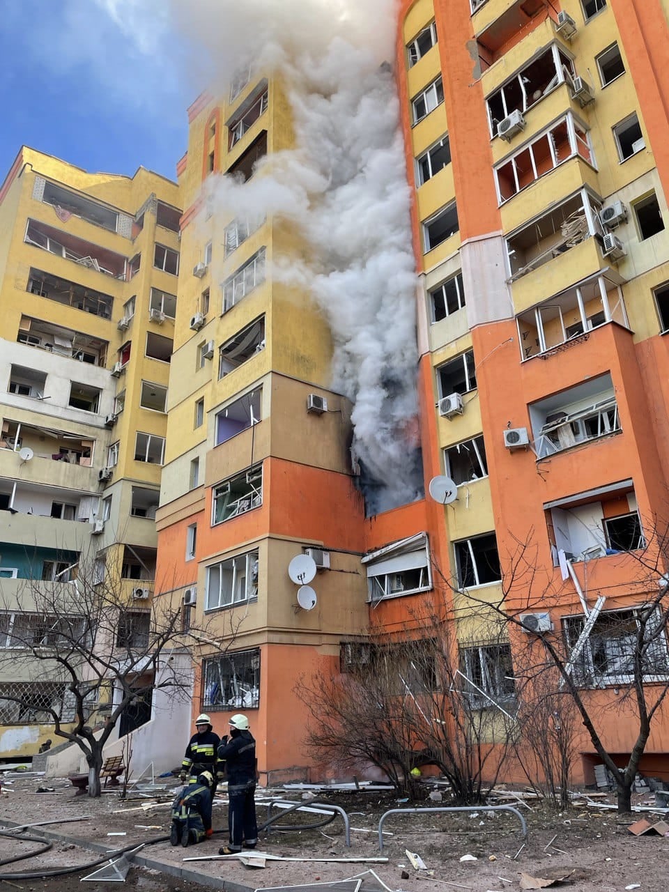 В результате атаки погиб 1 человек, 11 человек пострадало и 1 человек находится под завалами. В двух жилых домах пожары потушили. Информация уточняется. От ГСЧС привлечены 55 человек и 13 ед. техники.