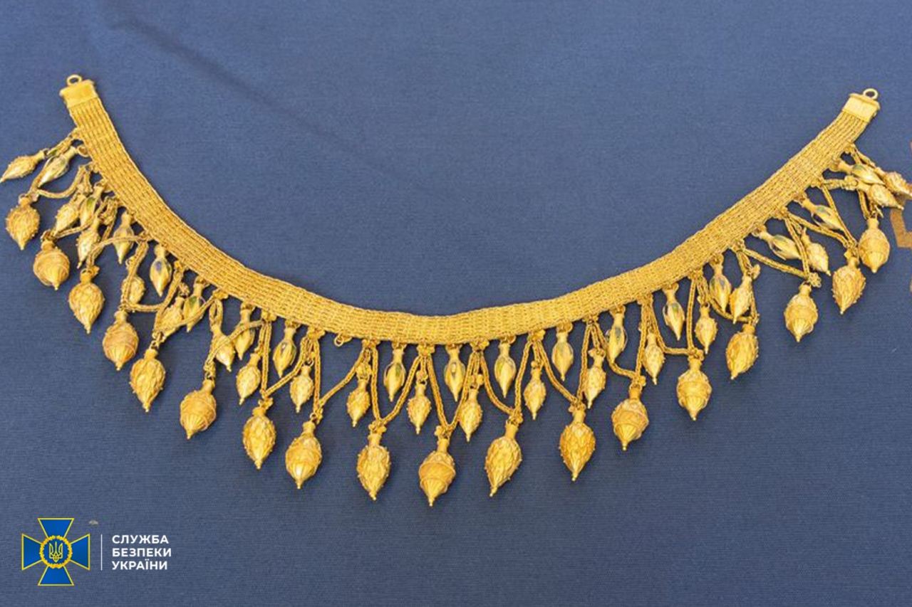 Речь идет о драгоценных предметах VIII-IV веков до нашей эры, в том числе золотые серьги, кулон, чокеры и пектораль.