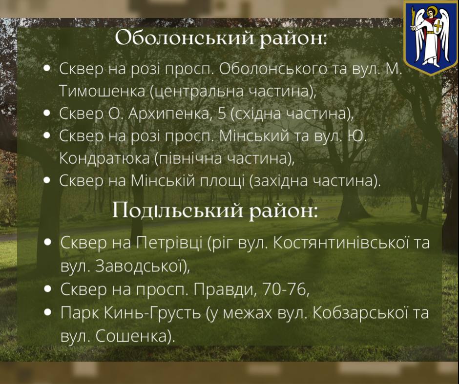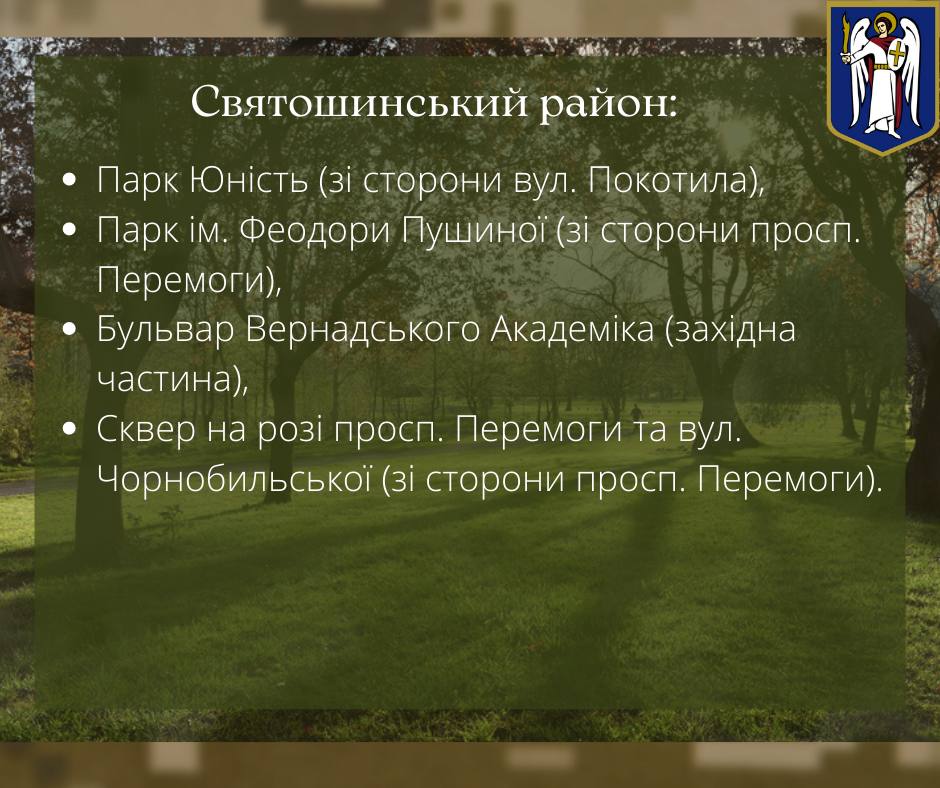 Следовательно, в Дарницком районе опасными остаются сквер "Привокзальный" и сквер Григоренко 36-38. В Днепровском районе – парк вдоль улицы Малышко (сторона моста на улице Строителей) и парк Попудренко.