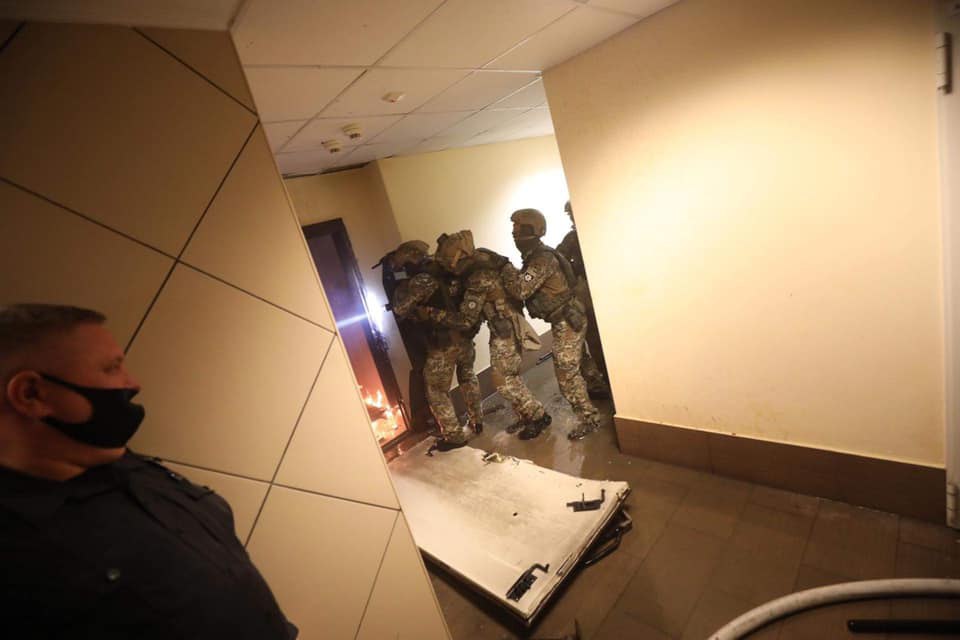 В столице введена специальная полицейская операция по задержанию мужчины, который ранил полицейского и гражданского человека. Квартиру с мужчиной внутри брали штурмом, его задержали.