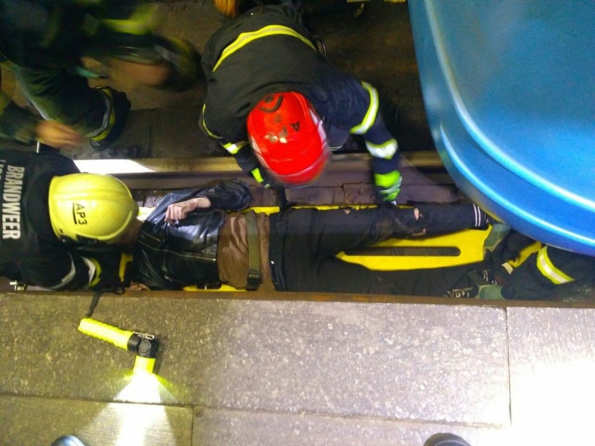 В "Киевском метрополитене" отметили, что метро возобновило работу. Работники Государственной службы по чрезвычайным ситуациям освободили мужчину и передали медикам, которые ждали возле метро.