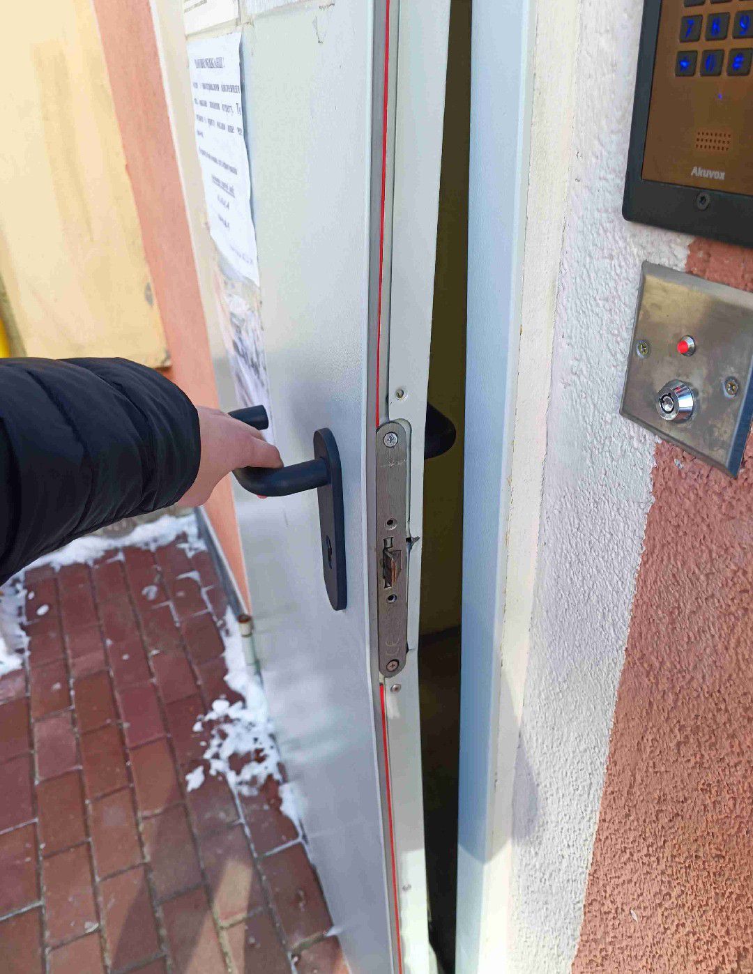 Конструкция так деформирована, что через щели посторонние лица могут беспрепятственно попадать внутрь, нажимая на внутреннюю кнопку открытия.