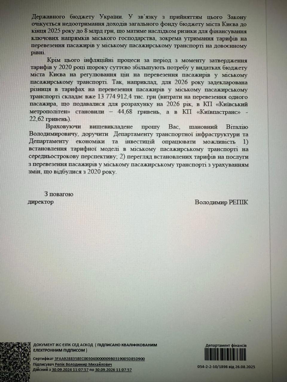 В документе КГГА прямо отмечено: без этих средств столица не сможет дальше субсидировать транспорт и будет вынуждена поднять цену на проезд в несколько раз.