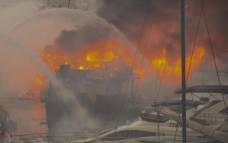 В китайском городе Гонконг произошел масштабный пожар на пристани для яхт. В результате пострадали 16 судов, а 10 круизных лайнеров с каютами затонуло.